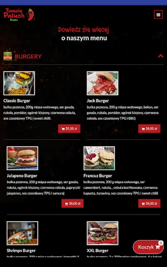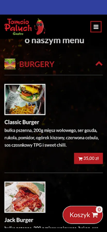 Application for ordering food from the Tomcio Paluch Gastro restaurant in Białystok.