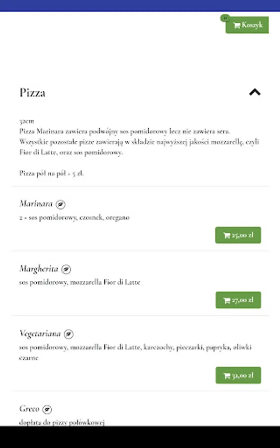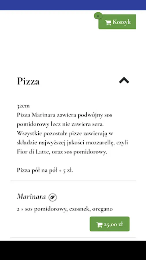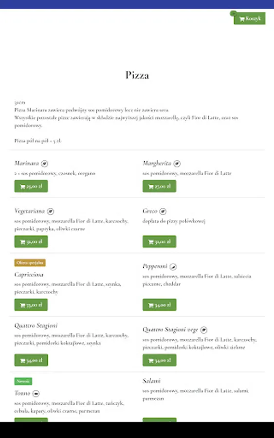 Application for ordering food from the Trattoria Vesuvio restaurant in Nowy Sącz.