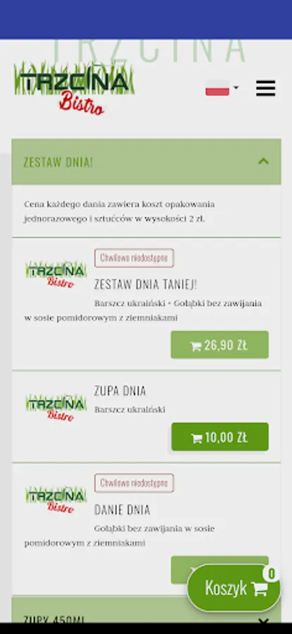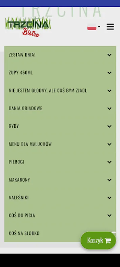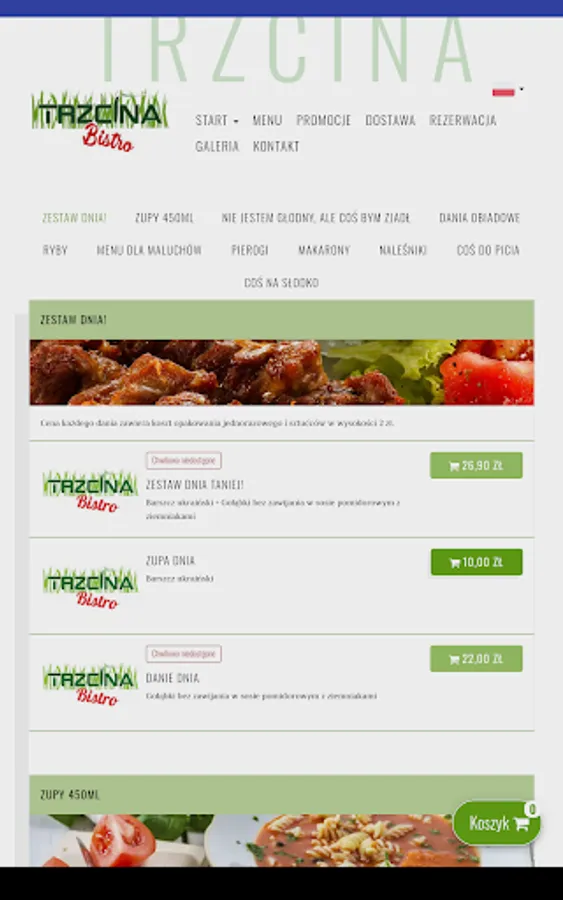 Application for ordering food from the Trzcina Bistro restaurant in Kielce.