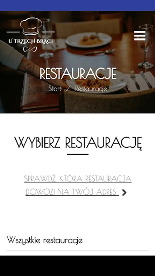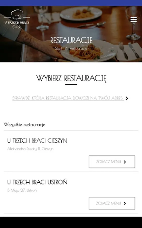 Application for ordering food from the U Trzech Braci restaurant in Ustroń and Cieszyn.