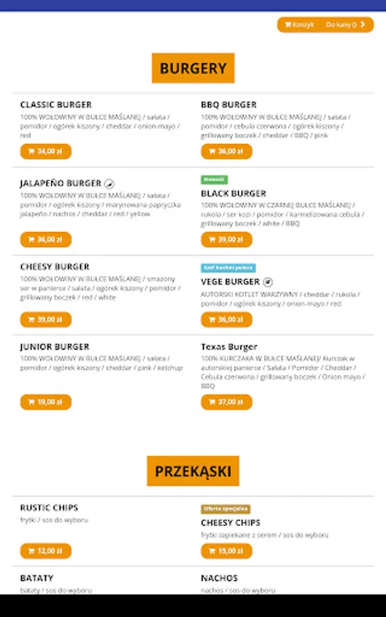 Application for ordering food from the Ugryź Burgera restaurant in Turów.