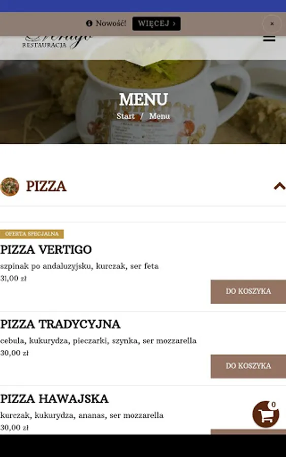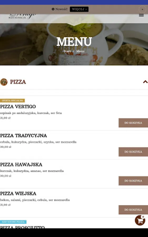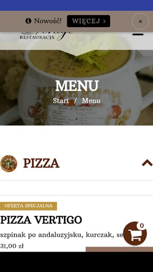 Application for ordering food from the Vertigo restaurant in Ruda Śląska.