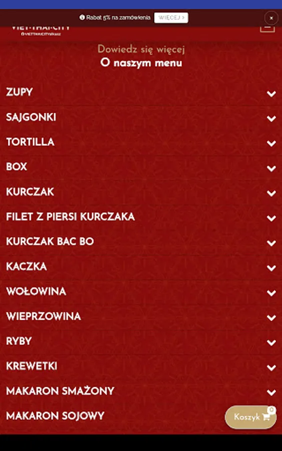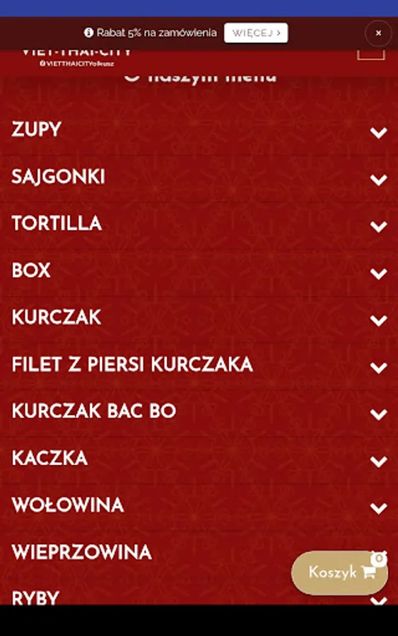 Application for ordering food from the Viet Thai City restaurant in Olkusz.
