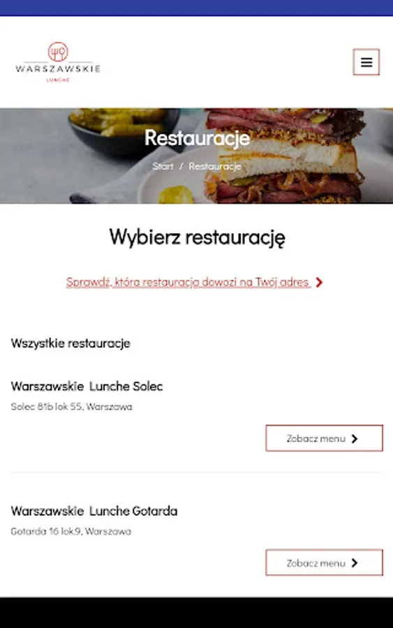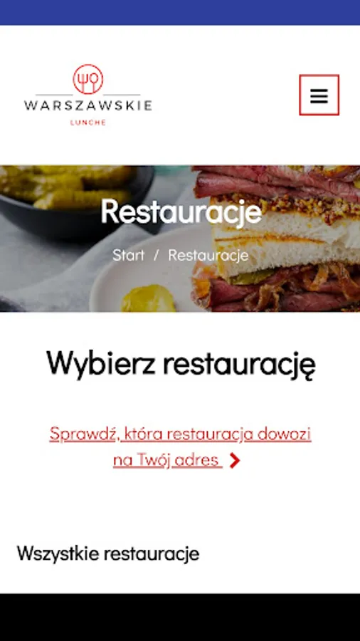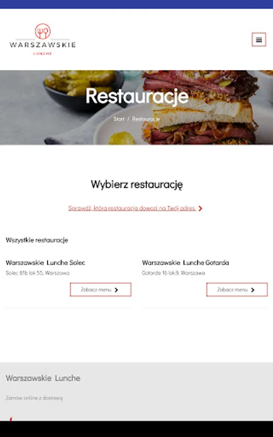Application for ordering food from the Warszawskie Lunche restaurant in Warsaw.