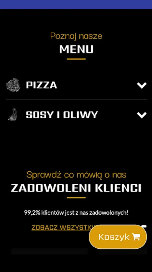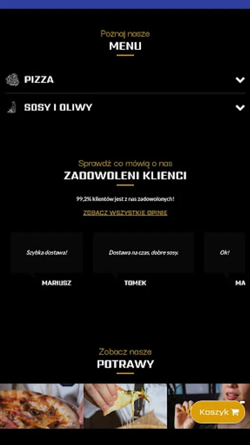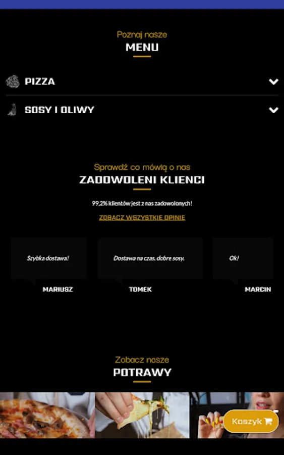 An application for ordering food from the Restauracja Pizzy restaurant in Ełk.