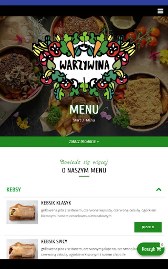 Application for ordering food from the Warzywina restaurant in Gdynia.
