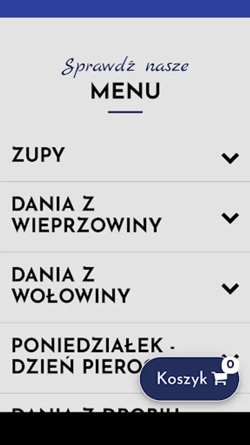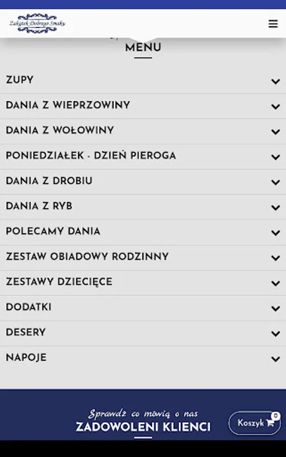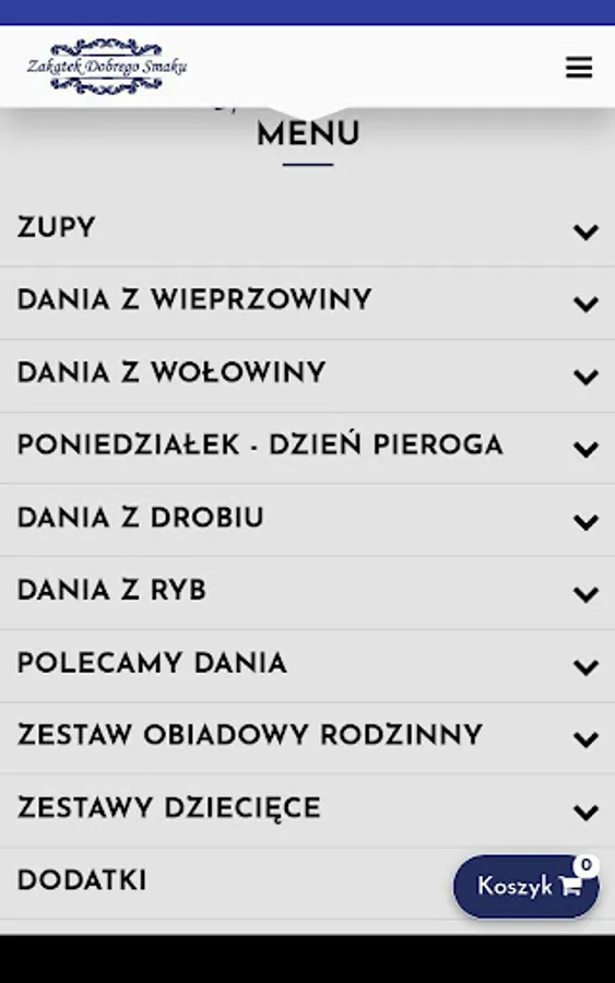 An application for ordering food from the Zakątek Dobrego Smaku restaurant in Lubliniec.