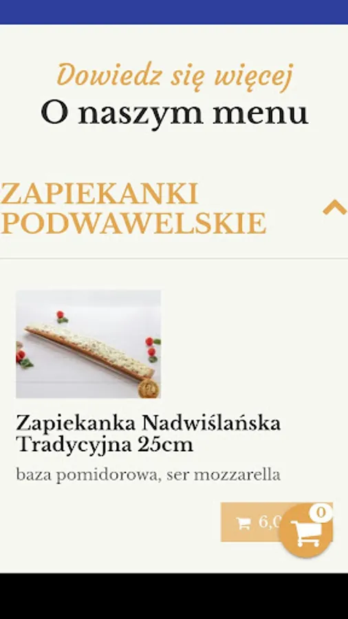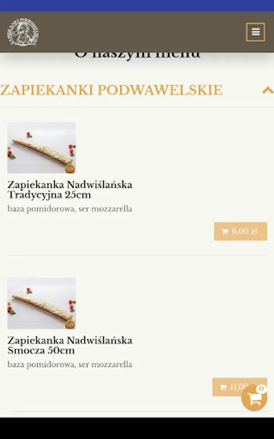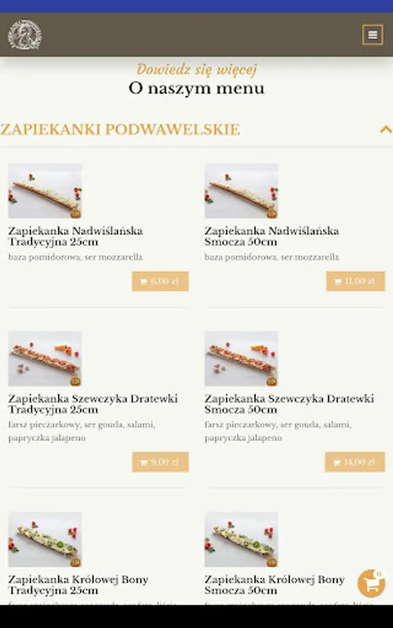 Application for ordering food from the Zapiekanki Podwawelskie restaurant in Krakow.