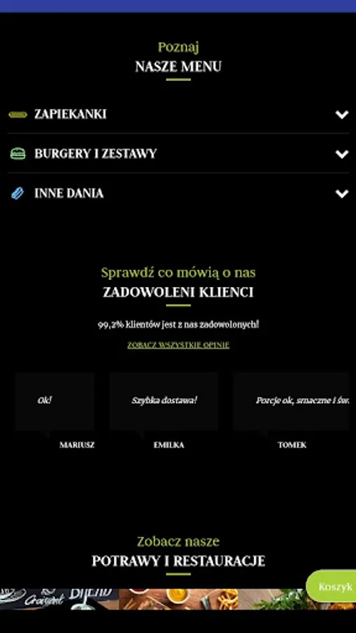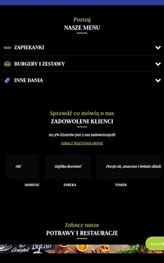 Application for ordering food from the Zapieksy Pruszkowskie restaurant in Pruszków.