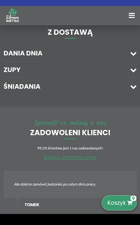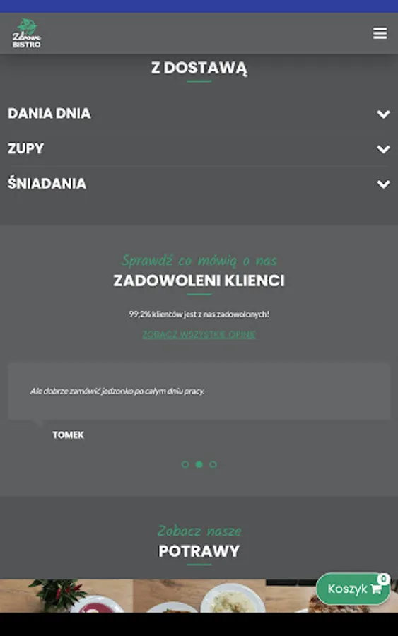 Application for ordering food from the Zdrowe bistro restaurant in Tarnów.