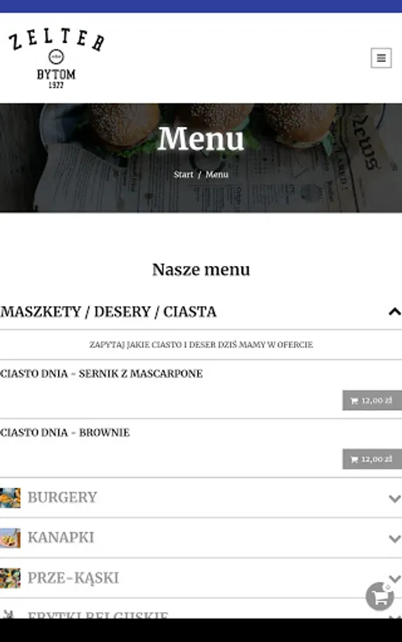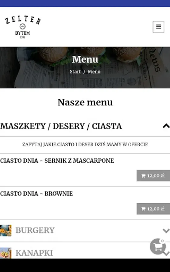 Application for ordering food from Zelter restaurant in Bytom.