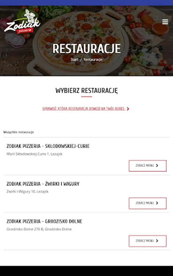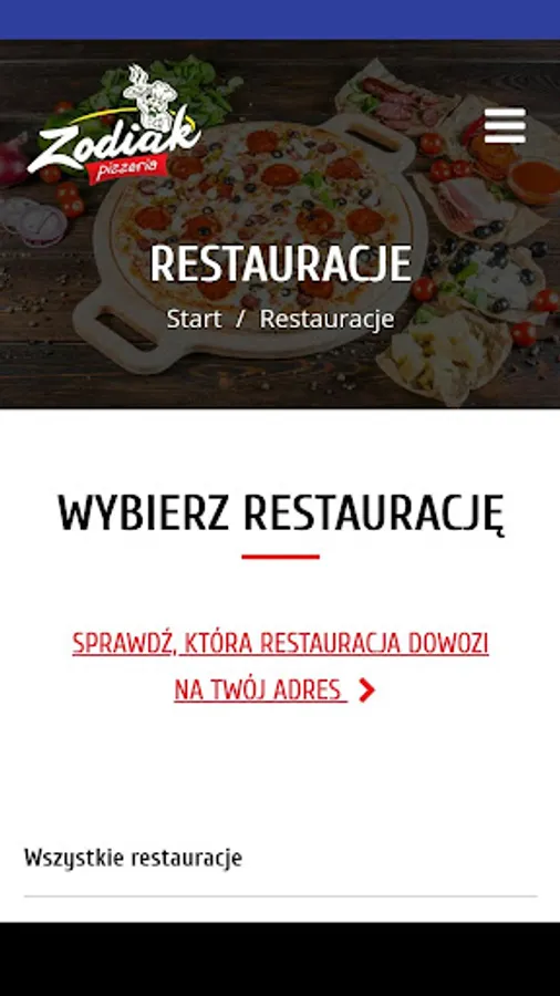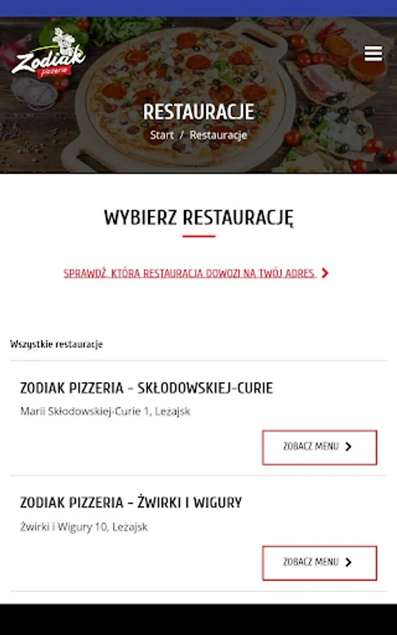 Application for ordering food from the Zodiak Pizzeria restaurant in Leżajsk, Grodzisko Dolne.