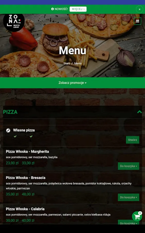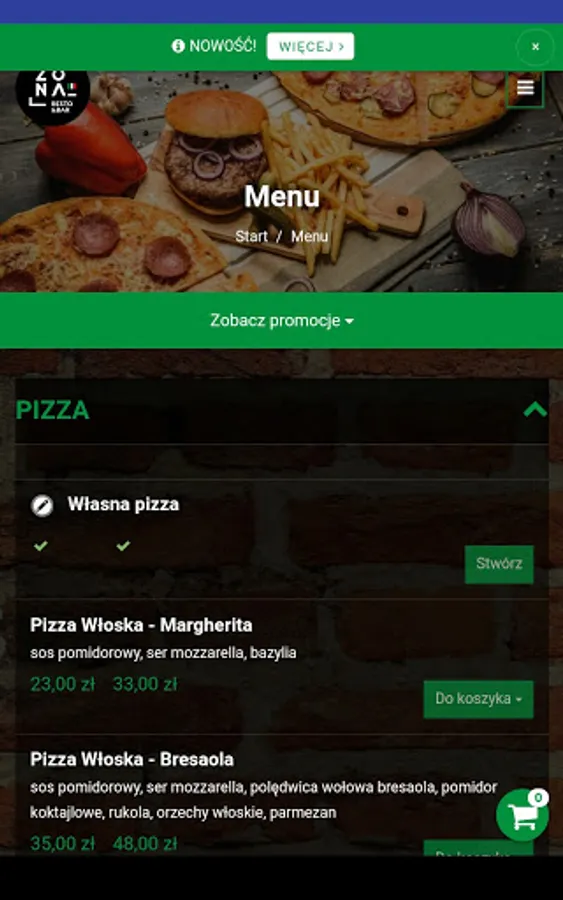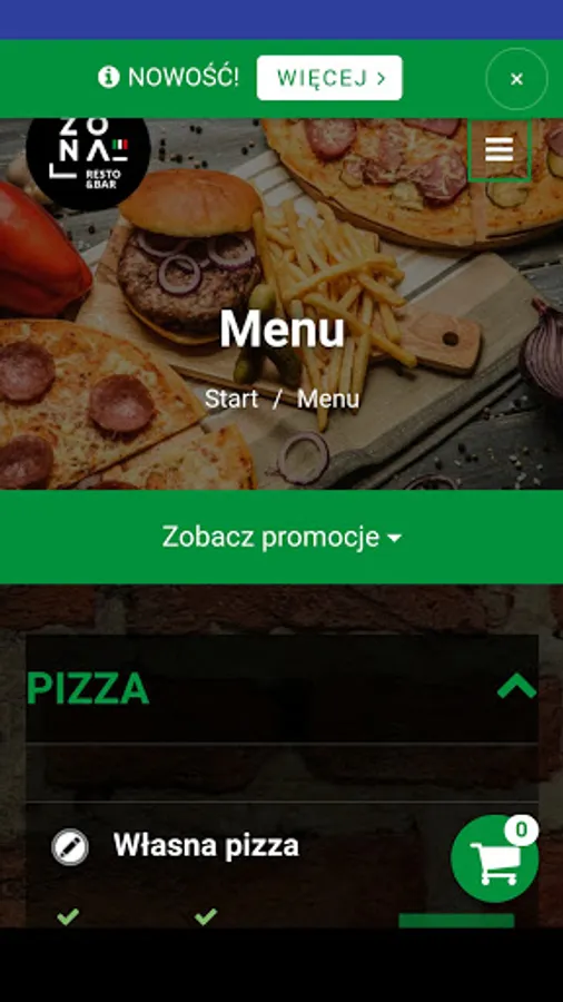 Application for ordering food from the ZONA resto & bar restaurant in Tarnowskie Góry.