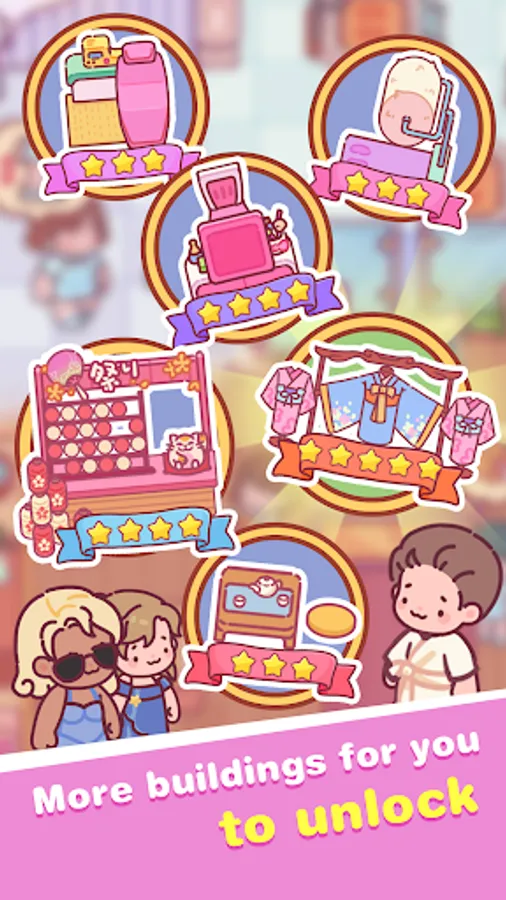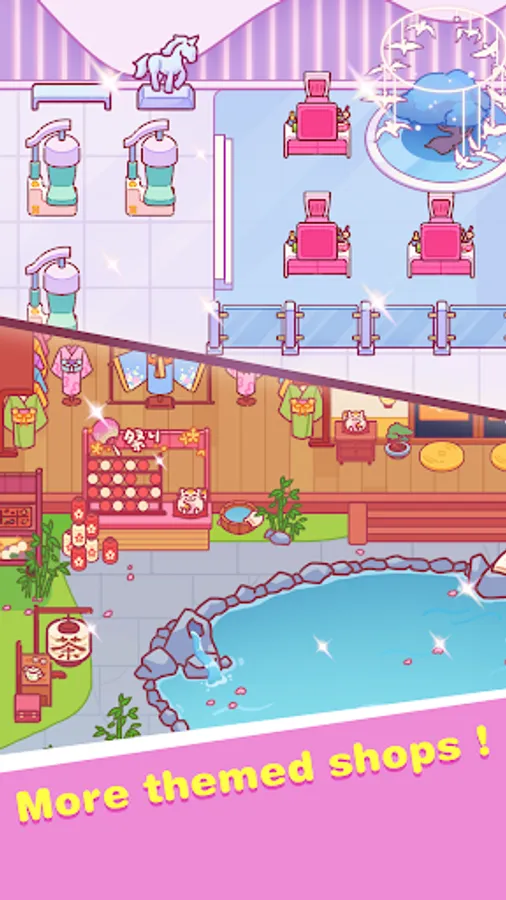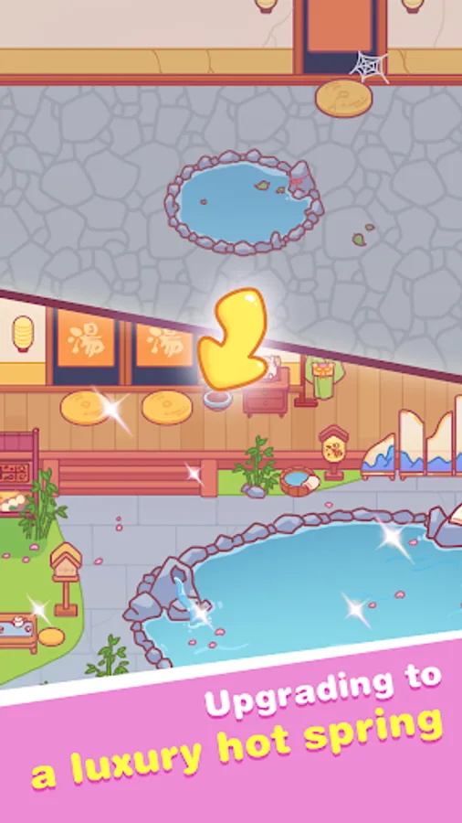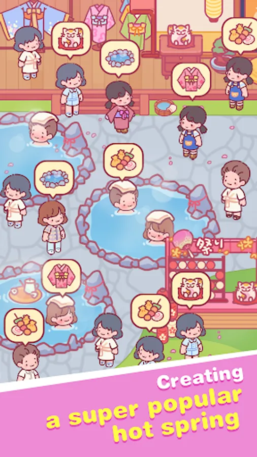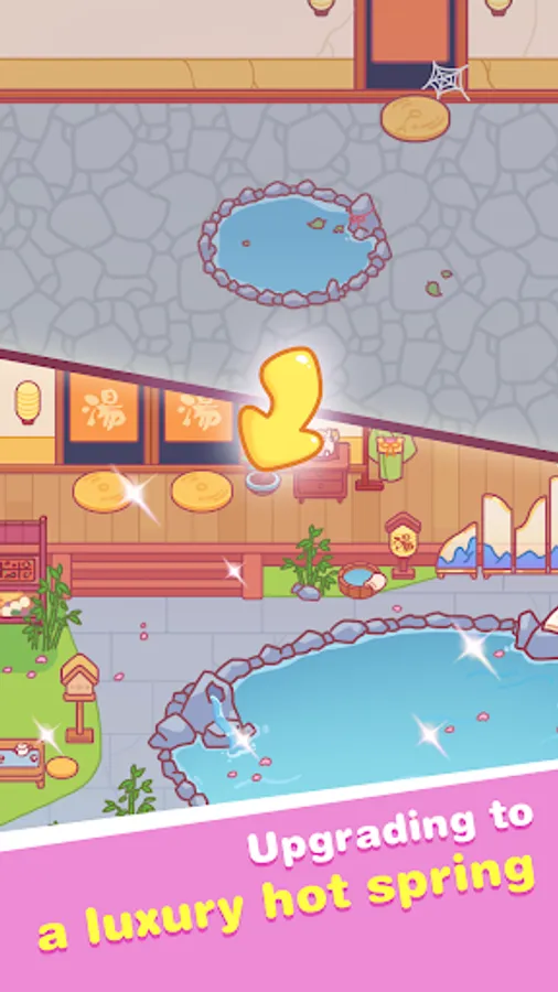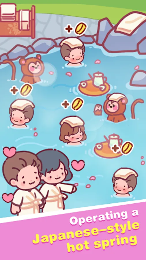 Welcome to "Idle Hot Spring", a relaxing simulation game where you'll manage your very own hot spring resort. Enjoy the soothing hot springs and manage your resort to win the hearts of your guests!