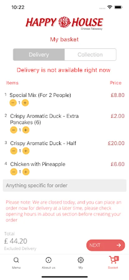 You can use your account or guest mode to place an order via this app.