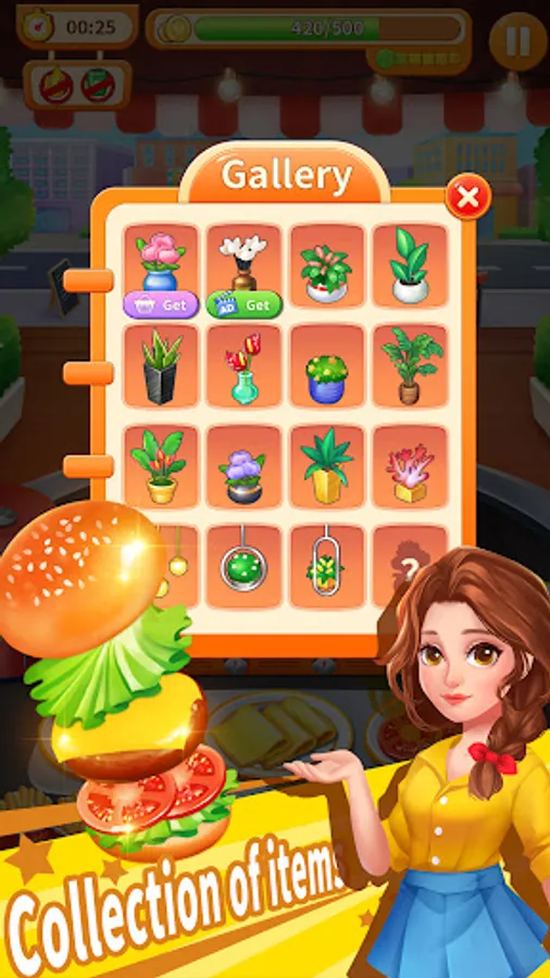 It’s very easy to play. Take orders and follow the instructions to make a burger for the customer. Do it as fast as you could. You could earn more by serving more customers! Use the money you make to upgrade the cooking tools, ingredients and the decoration of your shop!