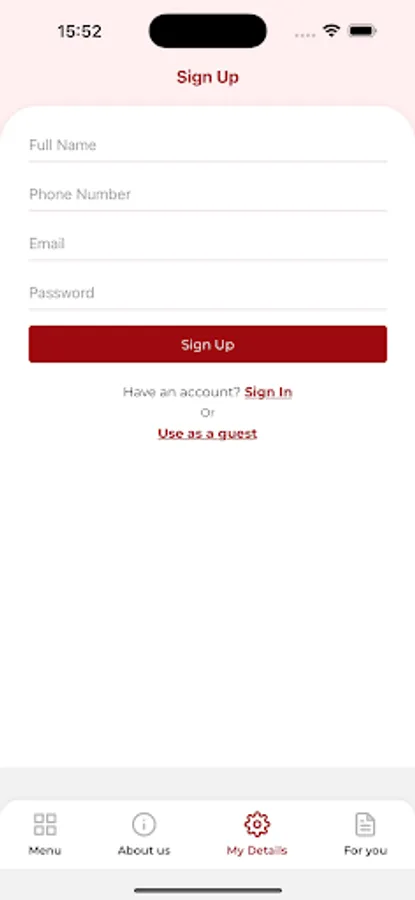 You can use your account or guest mode to place an order via this app.