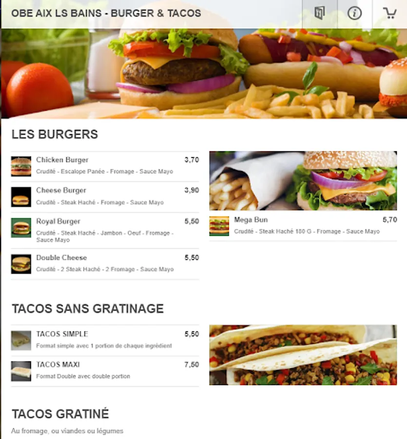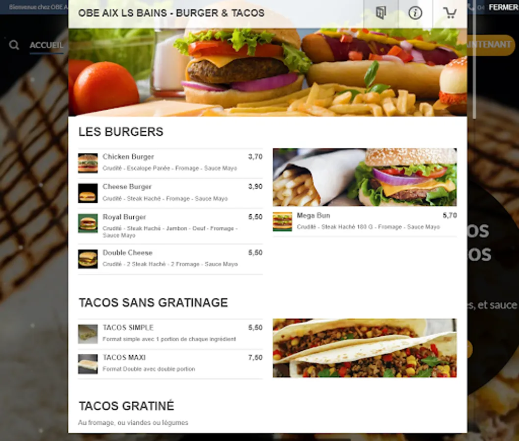 At OBE AIX LS BAINS – BURGER & TACOS, we serve excellent quality meals and we invite you to taste our delicious cuisine.