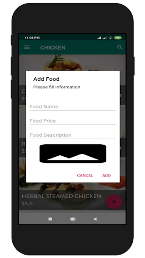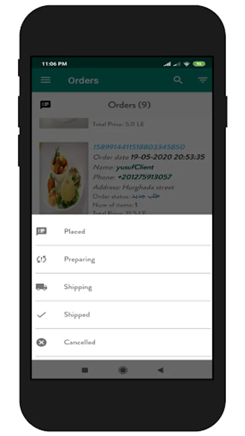 The manager's copy of the Rokn Al Sham restaurant application through which the restaurant management can receive requests, control its condition, add new products and departments, and amend them