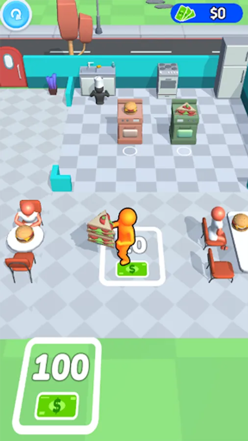 Take orders for guests and cook what they want to eat: burgers, pizzas, sandwiches; Milk, Cola, Ice Cream... Try to meet the needs of the guests.