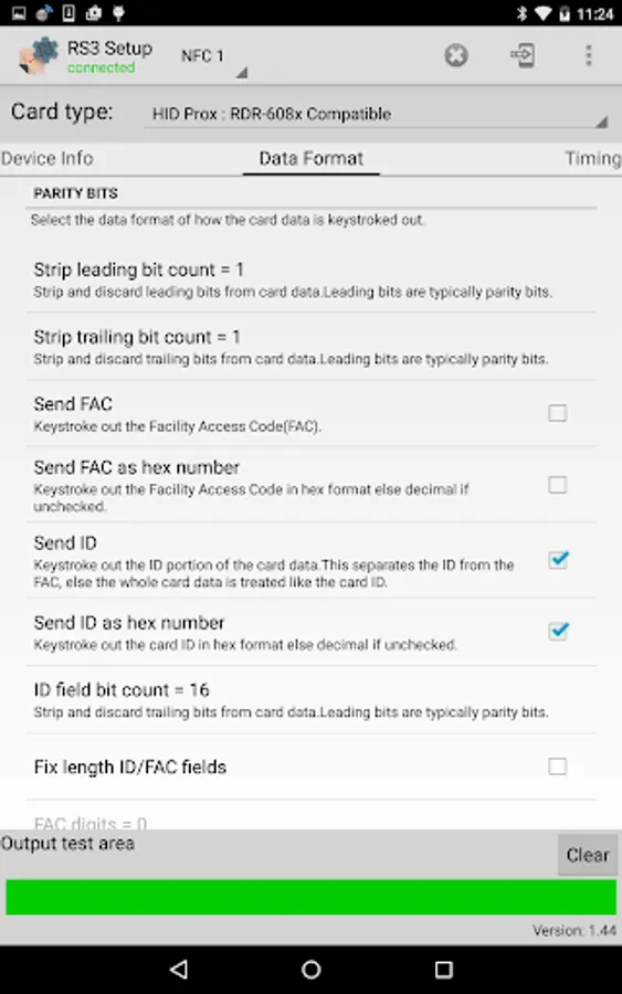 Setup output format between decimal and HEX, control Wiegand bits output format, strip leading and trailing bits, enable/disable FAC (Facility Access Code), Reverse / Invert Wiegand bits, and more.