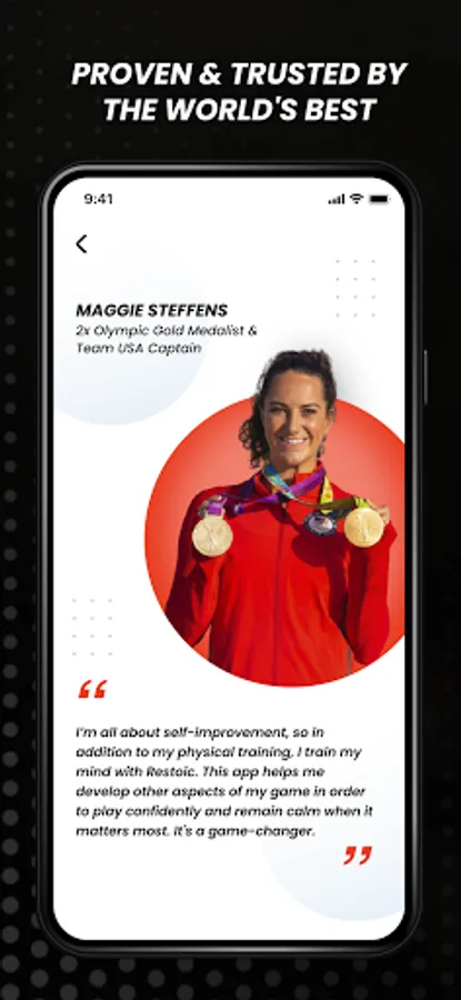 "I use the Restoic app because it reinforces how I want to optimally talk to myself through practice, meditation, and self-awareness. I can't express enough how powerful I think Restoic is." - Olivia Smoliga, 2016 Olympic Gold Medalist, Swimming