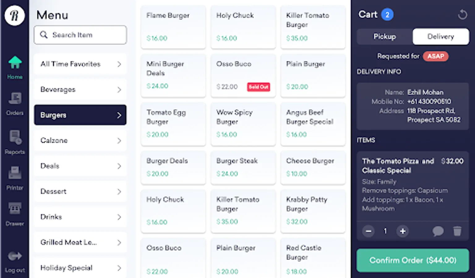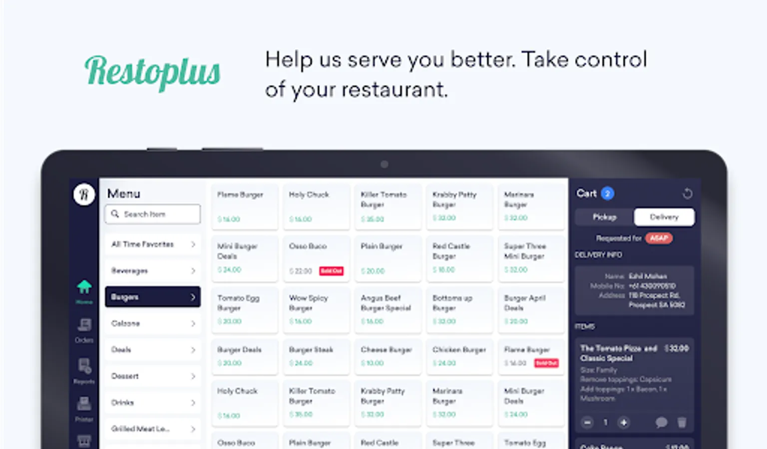 Point of sales application for restaurants and stores using Restoplus Pty Ltd services.