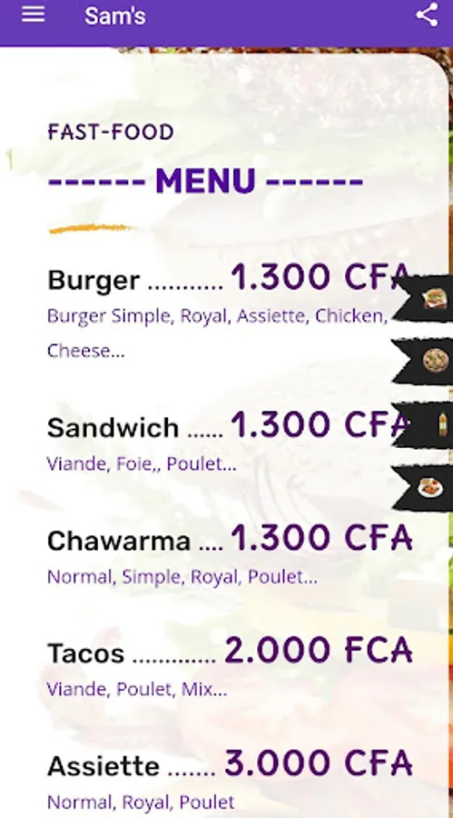 With Sam's Resto App, have our Senegalese dishes, fast food grills, Pizza ...