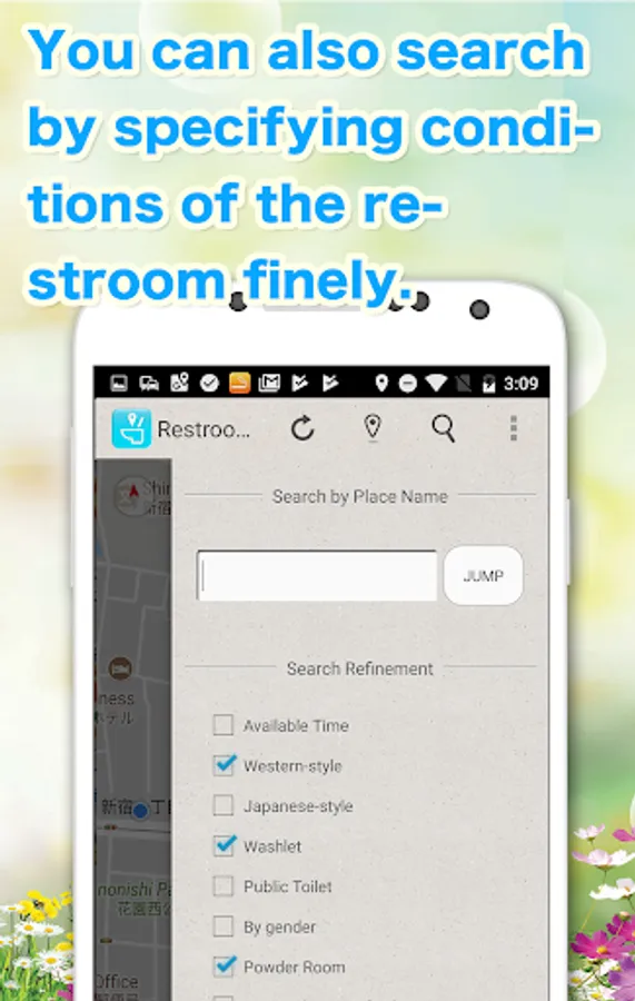 ■ Use the Google map of GP function, or to check the toilet of the location,