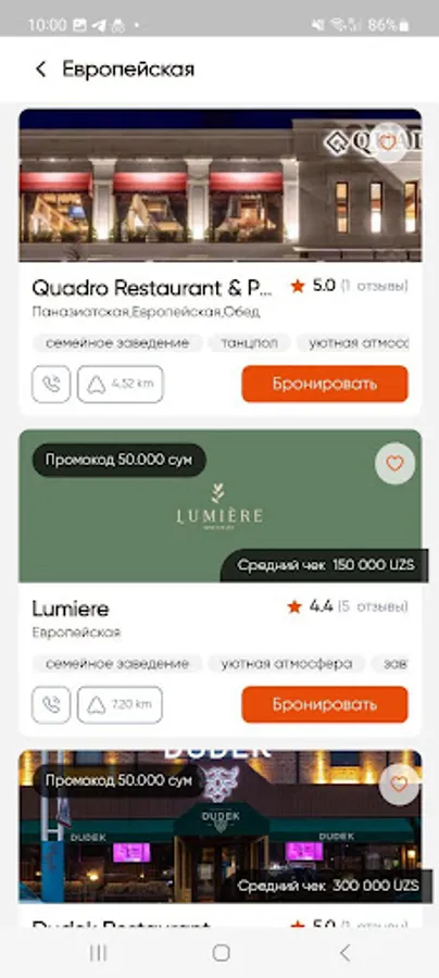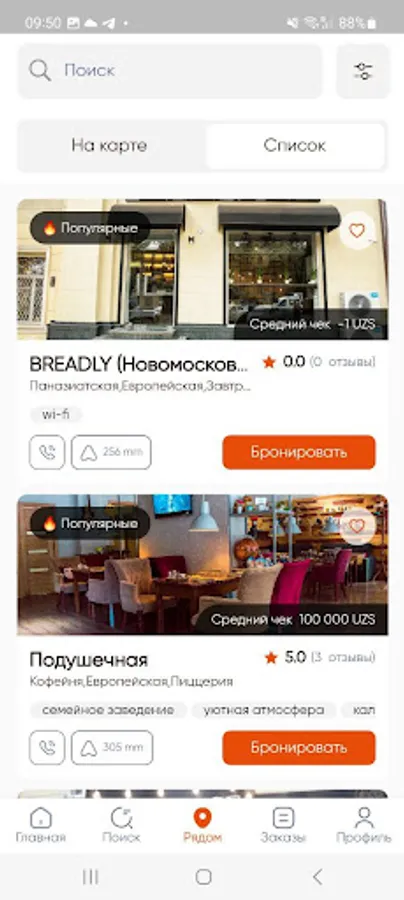 Convenient application for online reservation of tables in restaurants, cafes and bars.