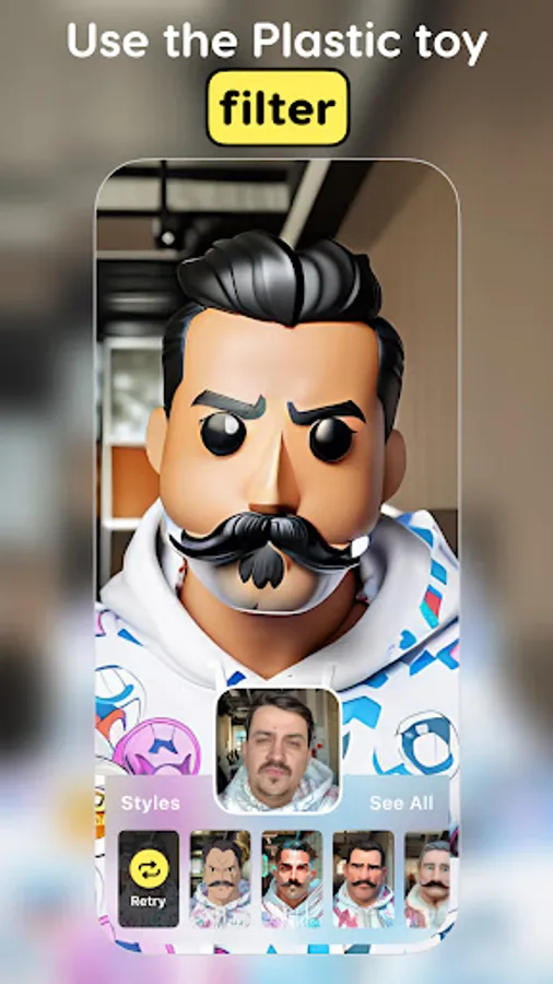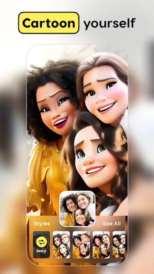Cartoon yourself with Restyle. Turn a photo into painting, transform the photo to sketch or cartoonify any photo and video in your gallery. With our cartoon photo editor you can cartoon yourself as a plastic toy, a cartoon princess, or turn your pictures into drawings.