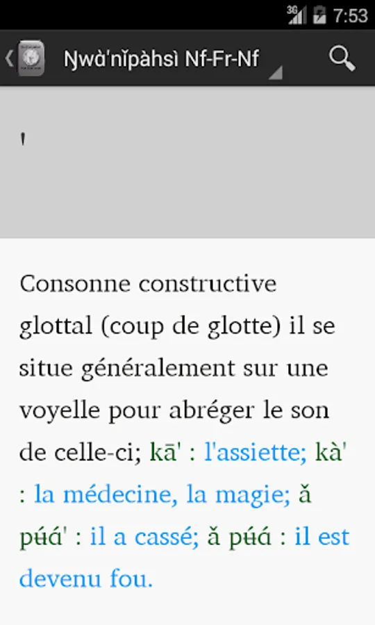 3 - To use this dictionary, you will necessarily need to use special characters in order to enter a word in fe'efe'e language. But do not worry, Resulam foresaw and anticipated this issue!