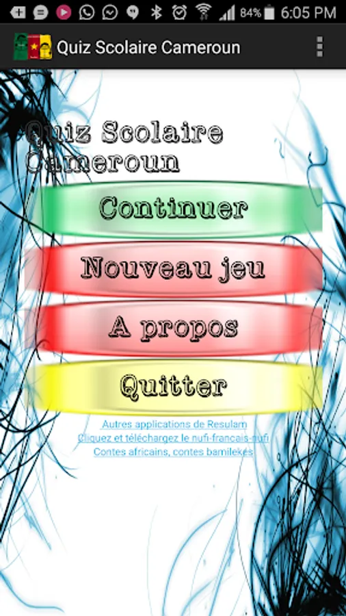 This application, developed by Resulam in collaboration with teachers and pedagogues of education in Cameroon, intended only to help you quickly review your school lessons. The application is split by class: SIL Preparatory Course (CP) Basic Course 1 (EC1) Basic Course 2 (CE2), Middle Course 1 (CM1), Middle Course 2 (CM2), currently. And later we will add the classes of High School and College.