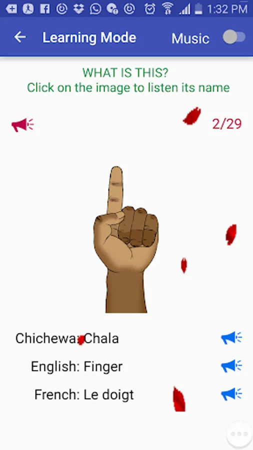We recommend you to patiently browse through the application while focusing on the three above-mentioned aspects, namely writing, pronunciation and images.
