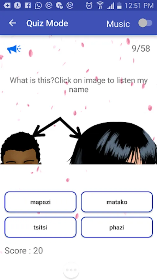 The "Setting" option allows you to change the background of the application, or to choose the sequential mode. Sequential mode allows you to browse the terms exactly as they are in the database. This mode is particularly useful when learning numbers.