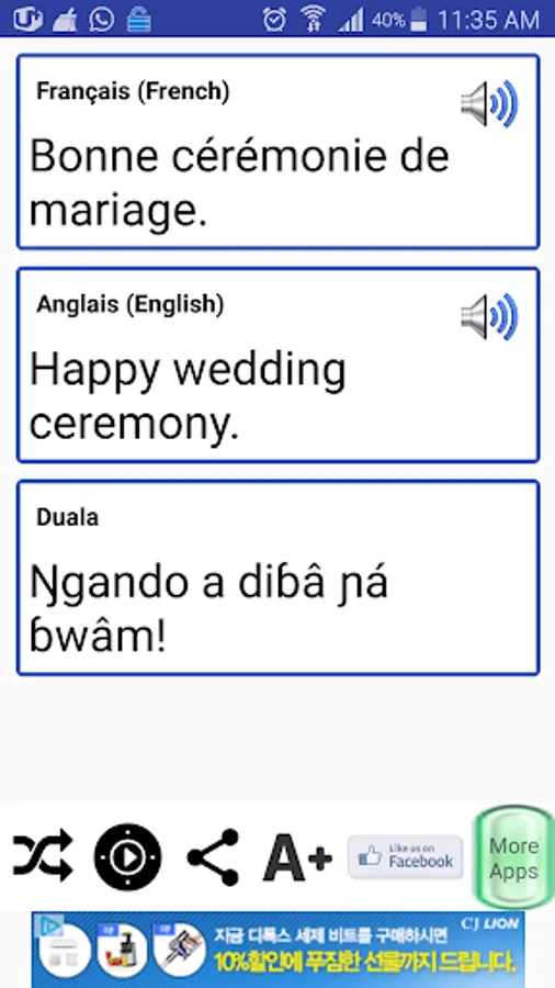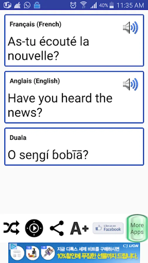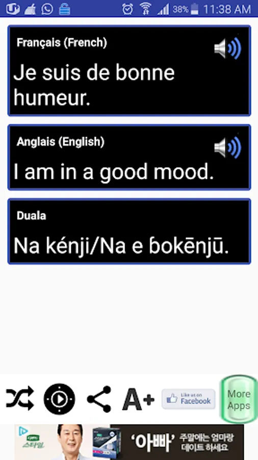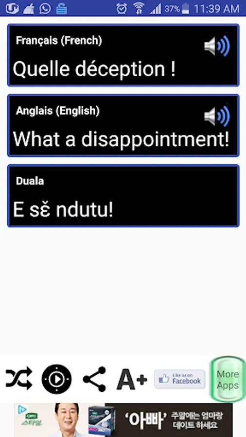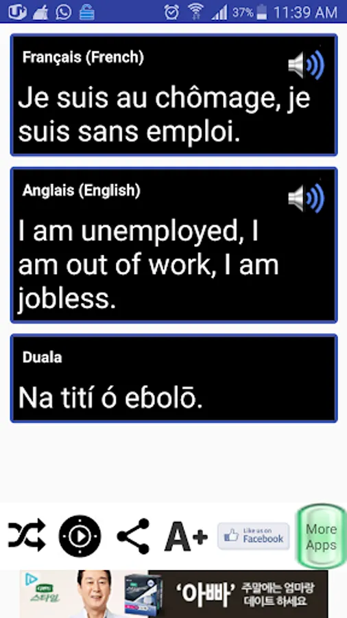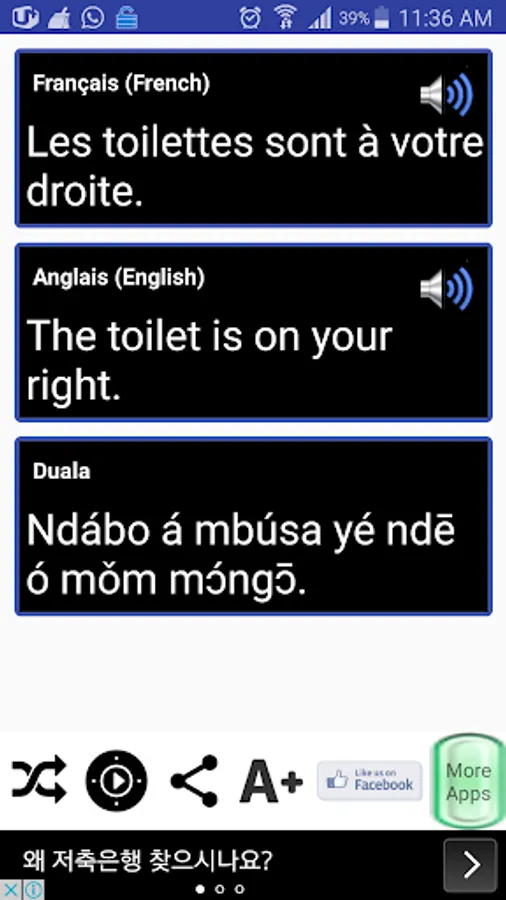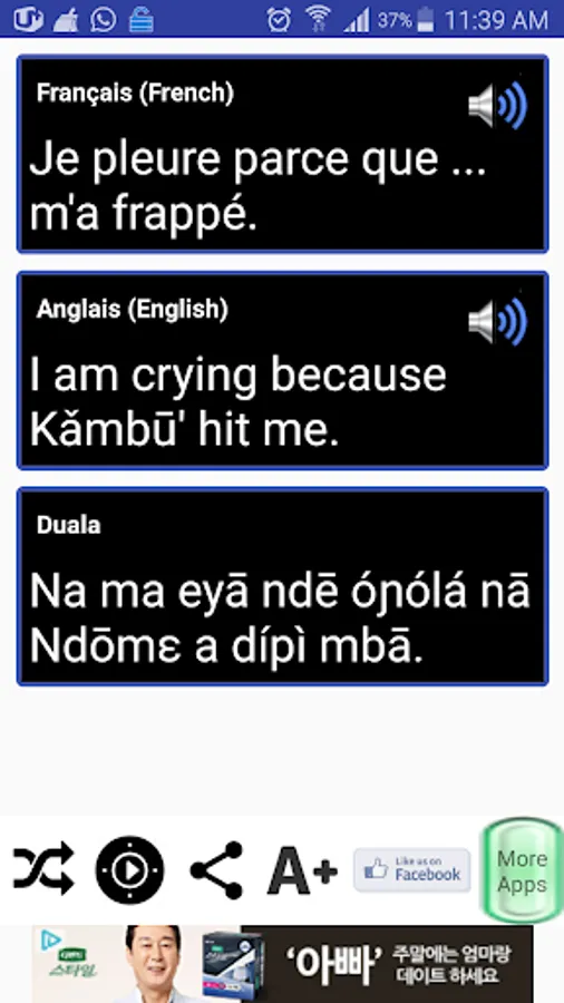 Cette application est la version android du livre intitulé « Guide de conversation trilingue français-anglais-douala » publié en Aout 2015 par l'auteur de cette application, et dont le lien de téléchargement est le suivant: https://www.createspace.com/6444559.