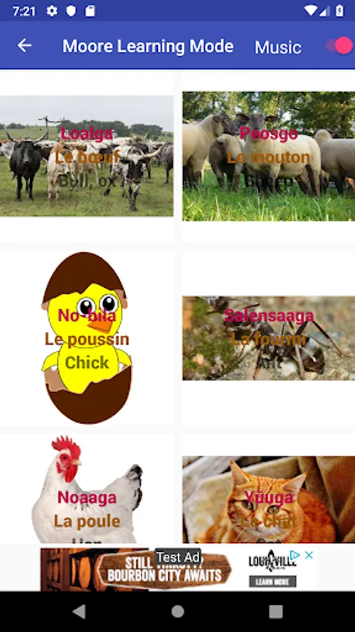 This trilingual application (Moore - French - English) combines image, sound and writing, and thus facilitates language learning from the most basic level. This first version consists of 12 carefully organized chapters, and other chapters will certainly follow later.