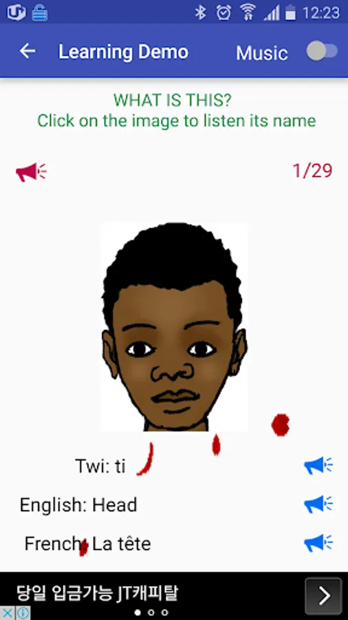 This trilingual application (Twi - French- English) is probably the first of its kind in the world. It combines image, sound and writing, and facilitates learning the language from the most basic level.