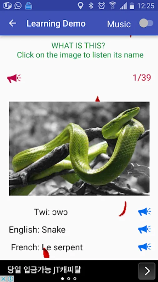 We recommend you to patiently browse through the application while focusing on the three above-mentioned aspects, namely writing, pronunciation and images.