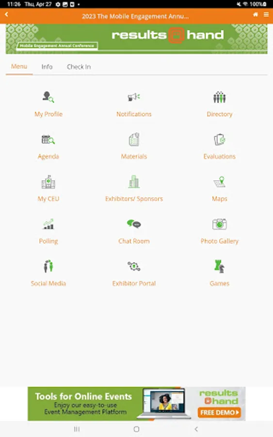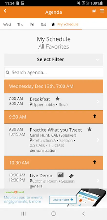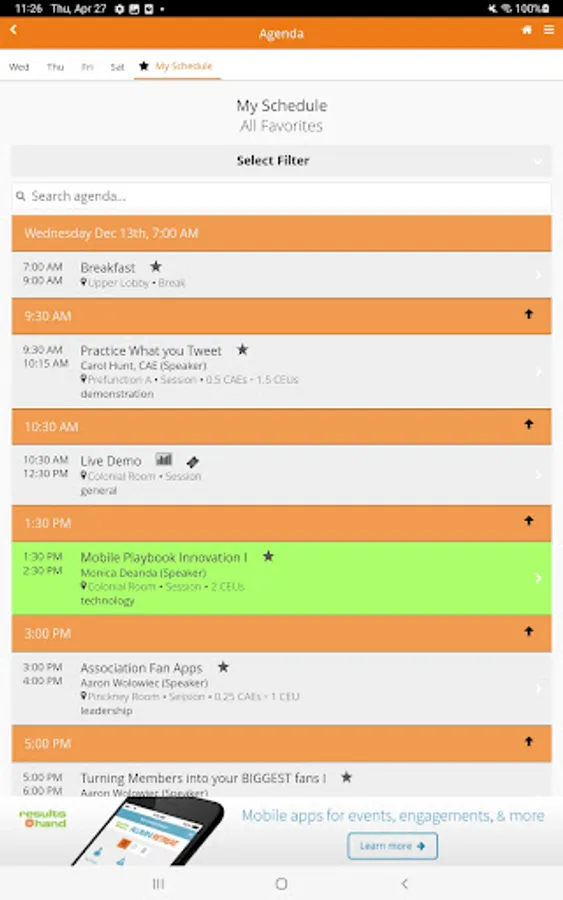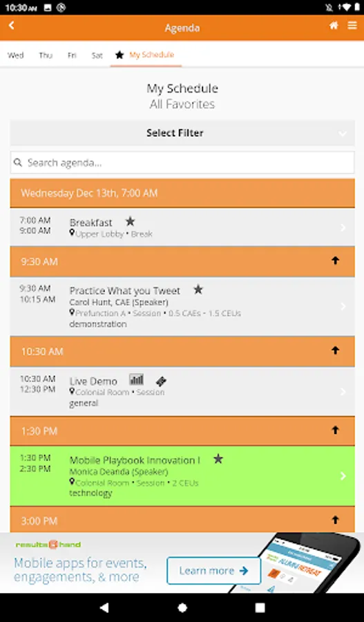 See the live Events currently in the ConferenceBeat app. Browse the event information and set your personal schedule as well as search for friends and colleagues attending the event and add them to your contact list (favs). Find you way around the exhibit hall and the venue with in app maps. Receive up to the minute alerts regarding the event pushed to your Device! Start in current Events and then go to your event to sign in and get started!