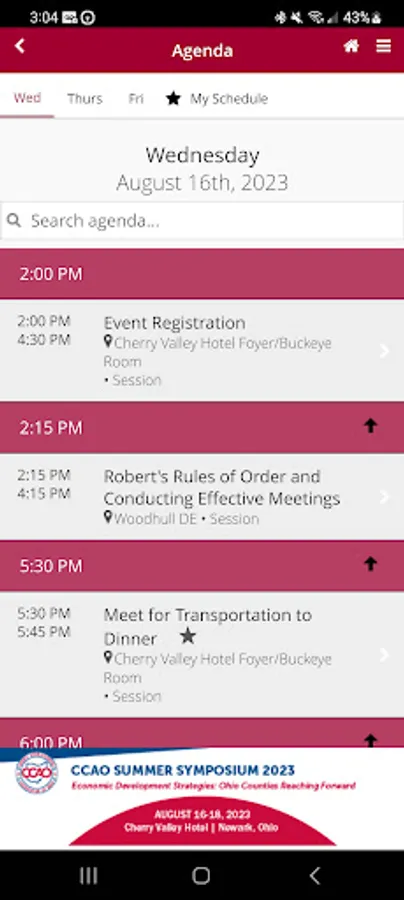 This is the mobile event app for the County Commissioners Association of Ohio (CCAO) 2023 Summer Symposium. Set up your profile, see push notifications received during the event; see the location of different session as well as a detailed description and duration.