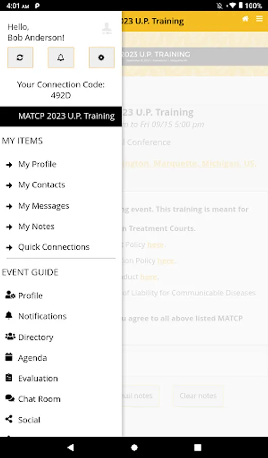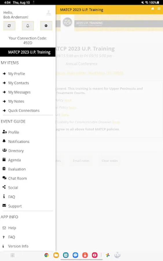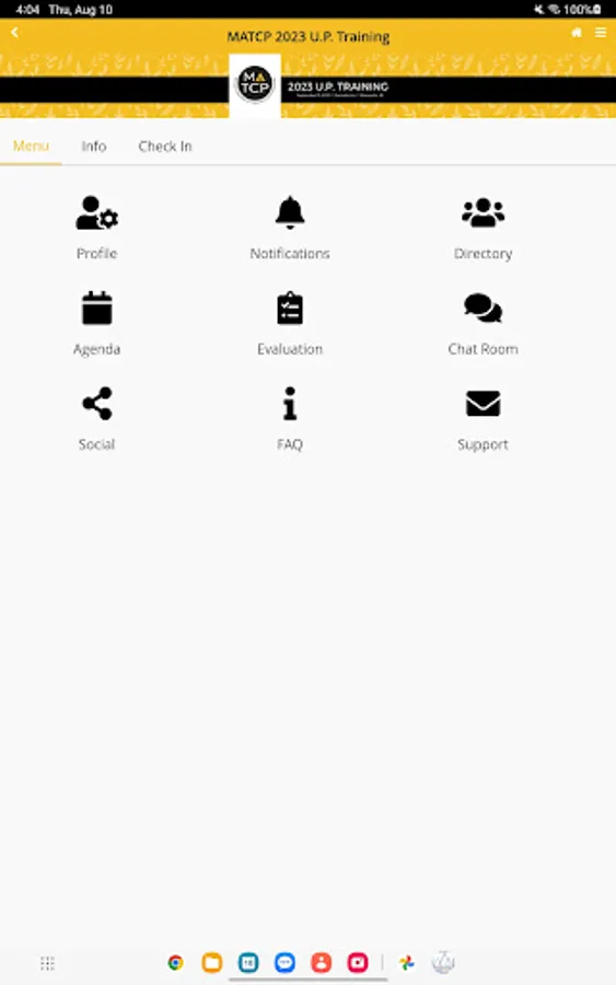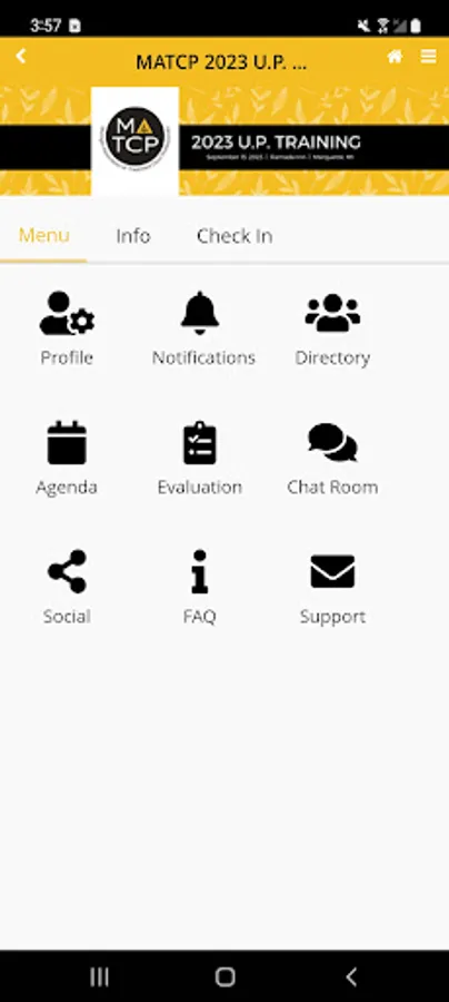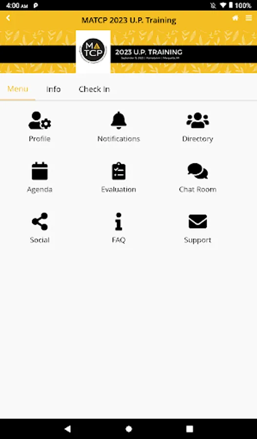 This is an event app for MATCP Events, including the MATCP 2023 U.P. Training. Access the Events listing; view the events; visit an event; view the agenda; connect with attendees; complete evaluations; receive updates and notifications during the event.