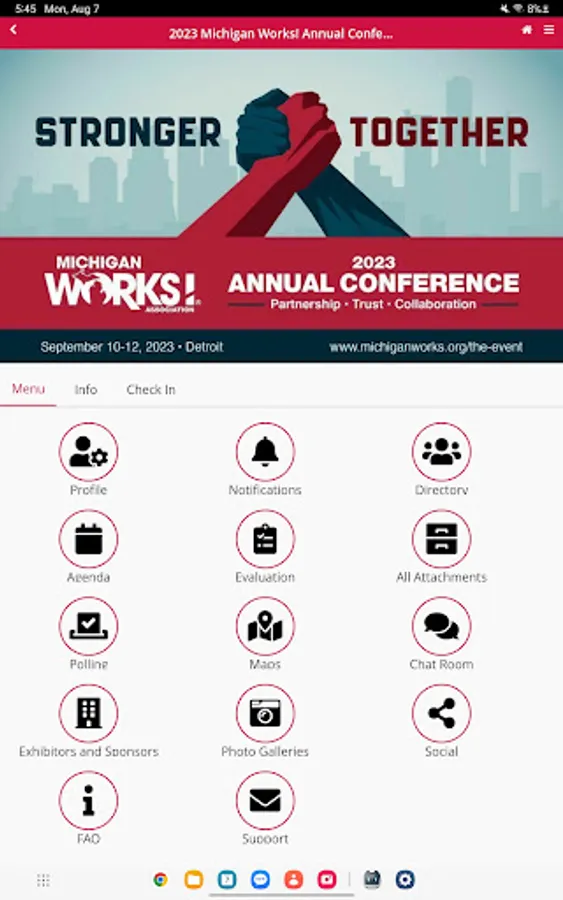 This is an event app for Michigan Works! Association Events, including the 2023 Michigan Works! Annual Conference. Use this to access various events and from there to interact with other attendees or exhibitors and to customize your own personal profile; as well as receive important announcements from the conference administrators. Other features include a fully interactive map of the exhibit hall, a complete and customizable agenda of all the sessions, audience polling, and much more.