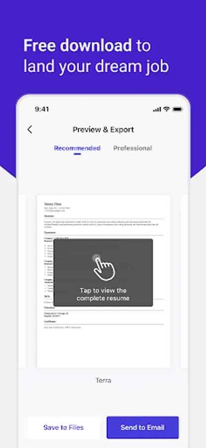 If you want that job, start with an impressive resume. Use our resume builder and professional templates to craft that perfect resume. While other free apps might make you pay to export your resume or CV, you can download your resume for free from the resume.com mobile app.
