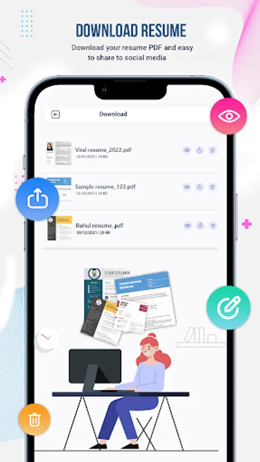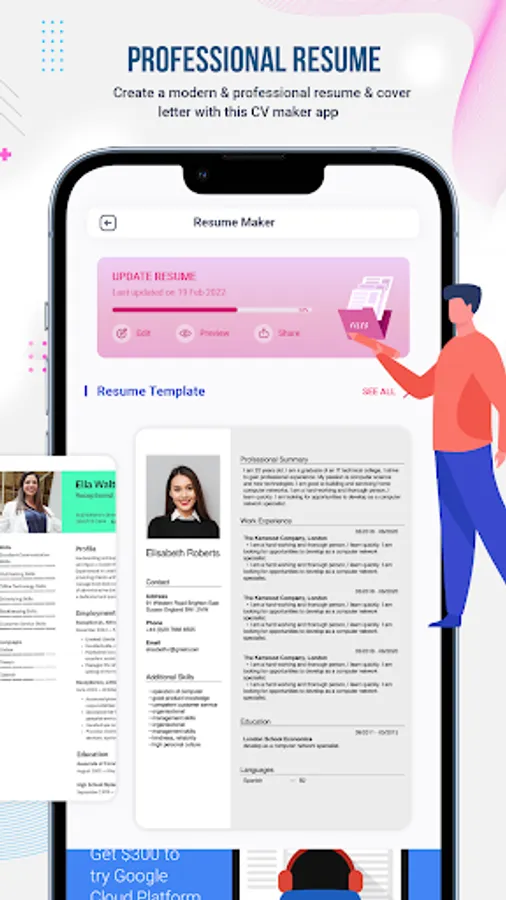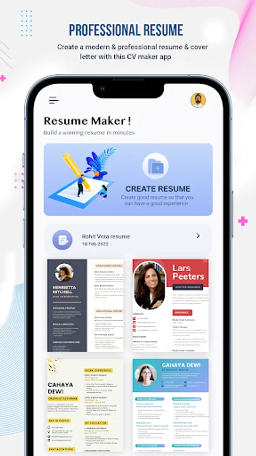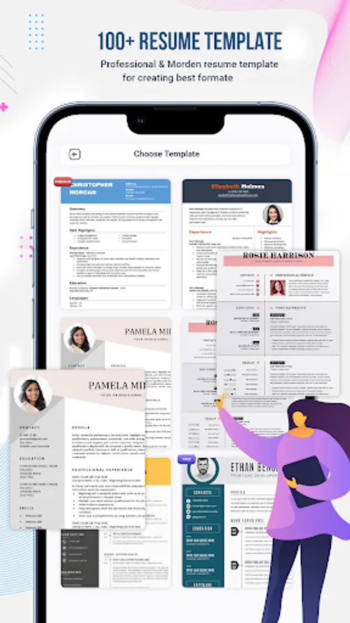 3. Cover letter templates for resumes: your resume or curriculum vitae, or download the CV cover letter in PDF separately. engineering student internships, IT Software developers, business/management jobs, nurses, teachers, assistant sales associates, medical doctors, graphic designers, Customer service, executives, accountant, bank job, and more are available in the Resume Creator app.