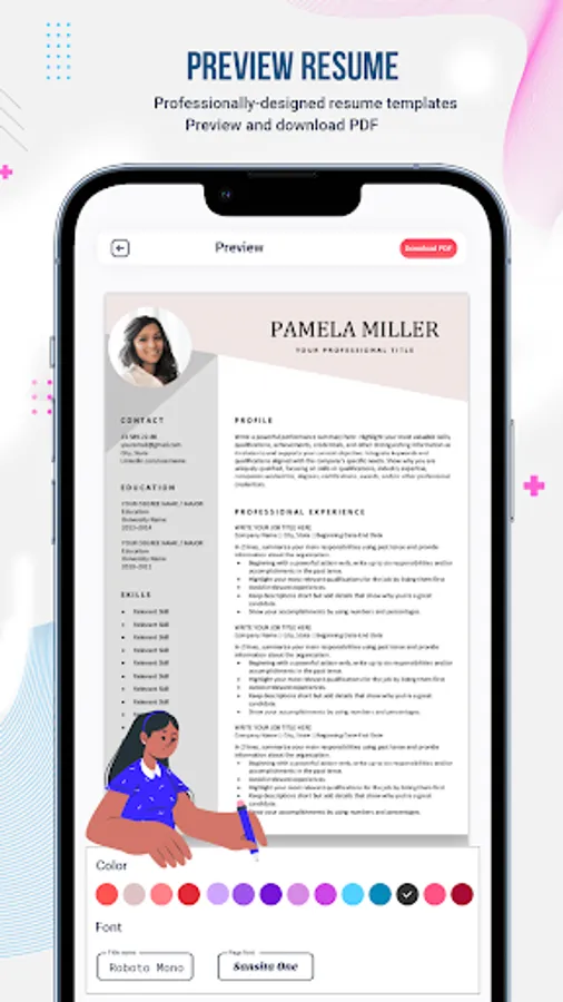 In just a few minutes, you can produce a professional resume or curriculum vitae (CV Maker) for job applications using this resume generator app