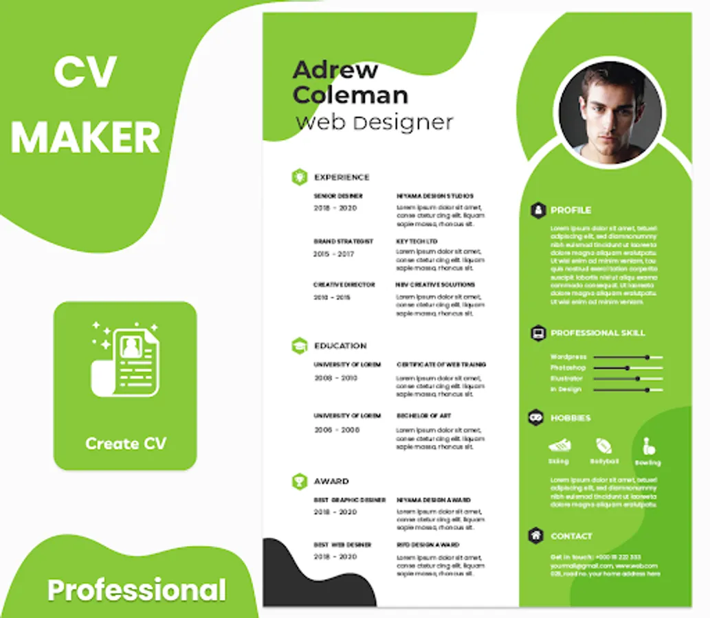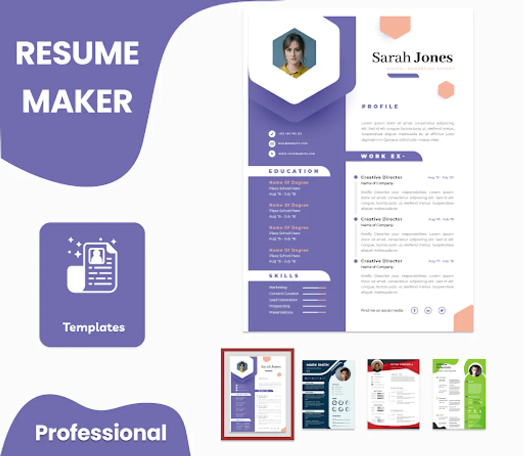 Create professional CV to get job faster with free Resume Builder App also get new version of resume templates from our Resume Maker App for Free.