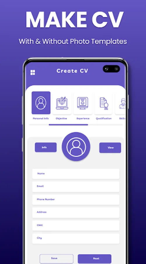 Save CV with one button tap in your required PDF or DOC file format. Just print the created CV with correct information to get high quality resume for free. In this CV builder app following are the features you need to put as your information: