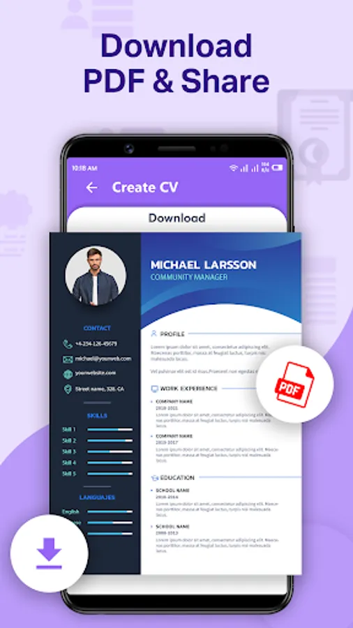 3. Resume maker enables you to download resume CV in PDF/JPEG format.
