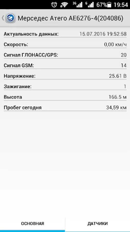 In a detailed view innformatsii mode, you can see the main monitoring parameters (speed, address, location, sensors).